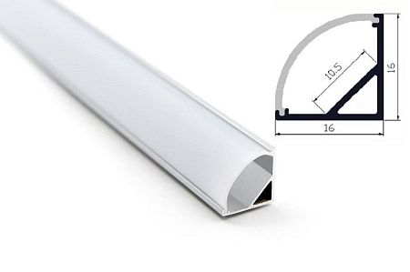 Комплект алюм. профиль УГЛОВОЙ 1616 СЕРЕБР., 2м, 16х16мм, молочн. диффузор, 4 загл. с отв., 4 клипсы