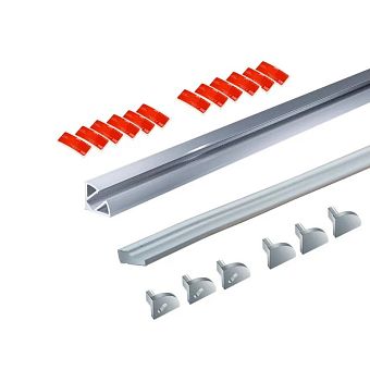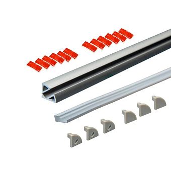 Комплект алюм. профиль УГЛОВОЙ 1616 СЕРЕБР., 3м, 16х16мм, молочн. диффузор, 3+3 заглушки, 6 клипс