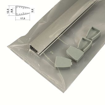 Комплект алюм. профиль НАКЛ. 1506 СЕРЕБР., 3м, 15х6м, молочн. диффузор, 3+3 заглушки, 6 клипс
