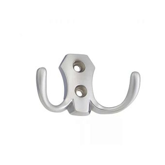 Крючок мебельный 2-х рожковый средний хром
