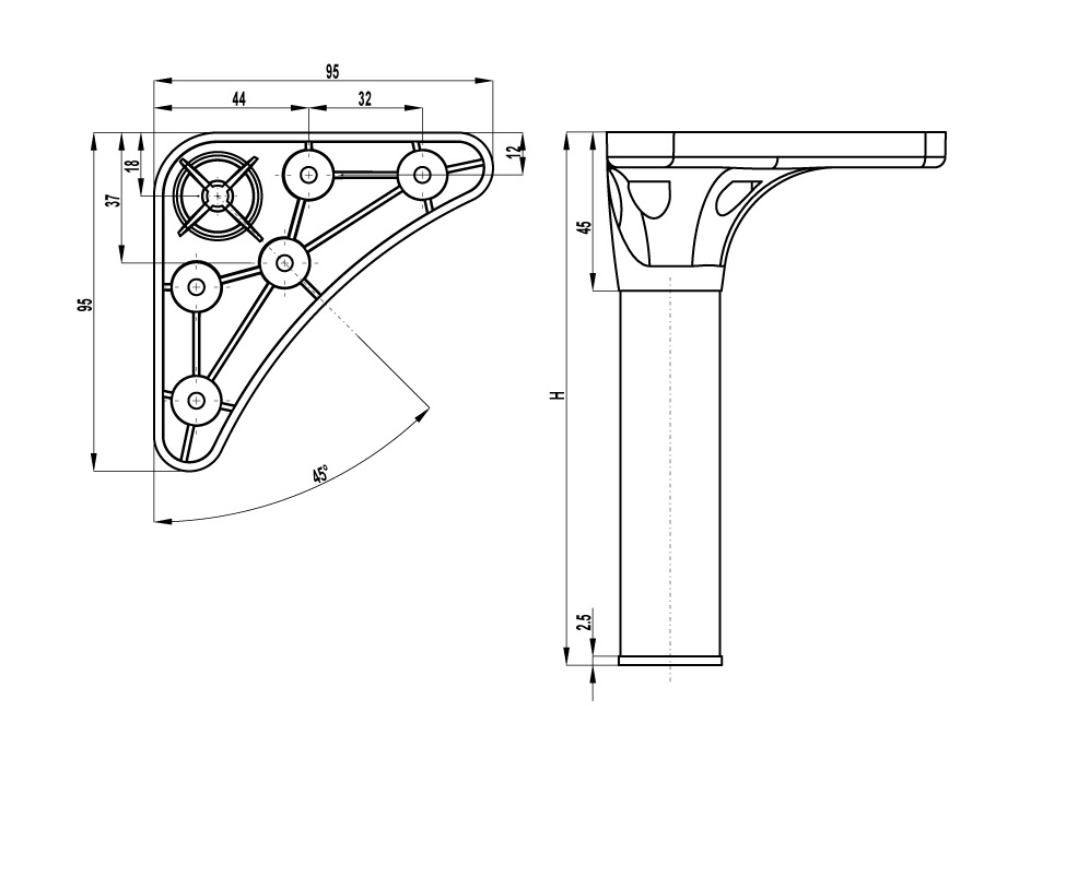 Опора нерегулируемая 200мм, черный (X042.200)