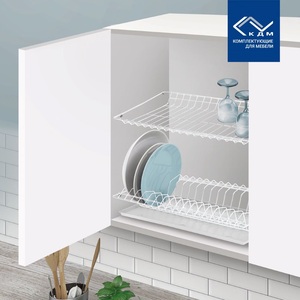 Надежные и удобные полки сушки встраиваются в кухонный шкаф. В комплекте пластиковый поддон.
