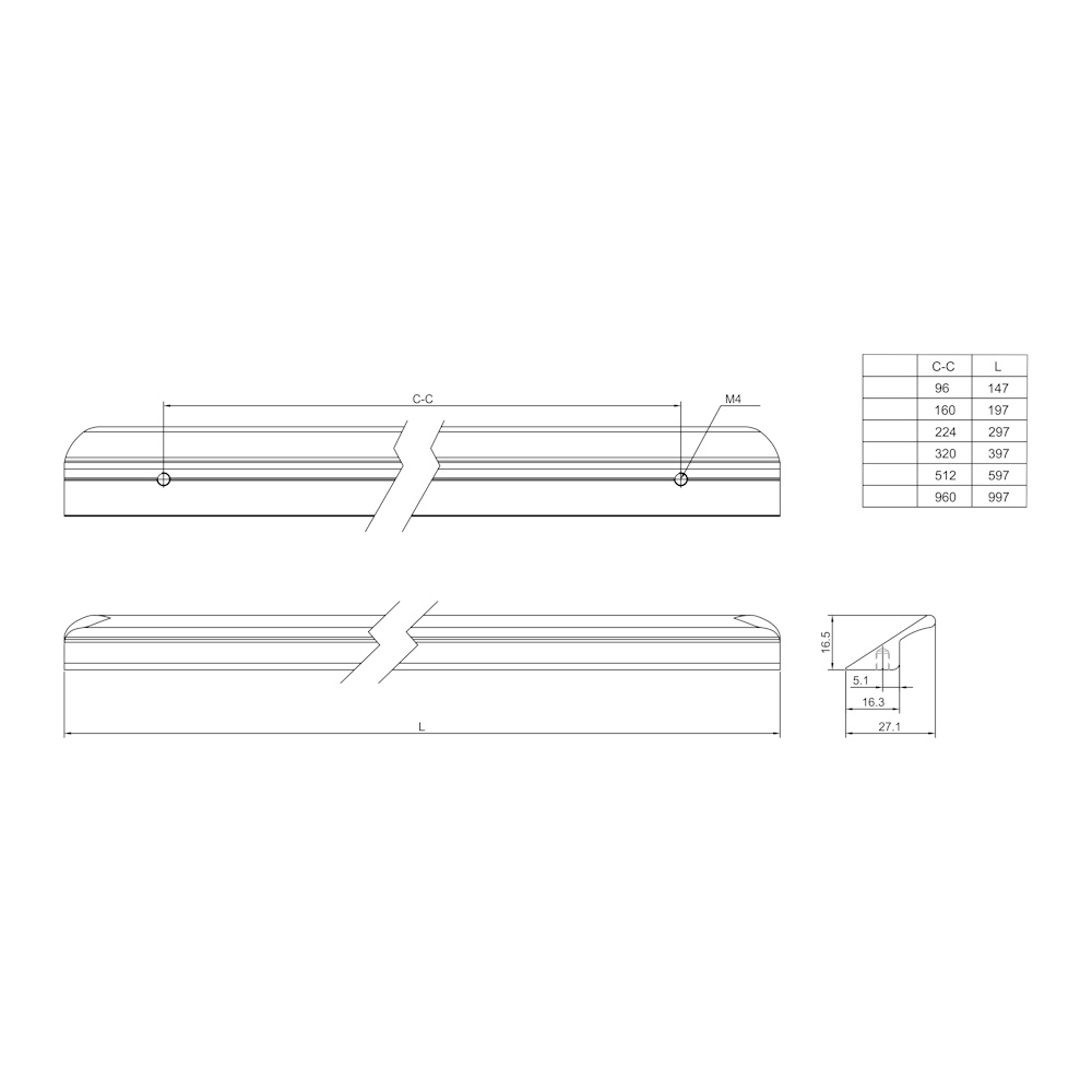Ручка-профильная EVA LINE 512мм (L=597мм) шампань