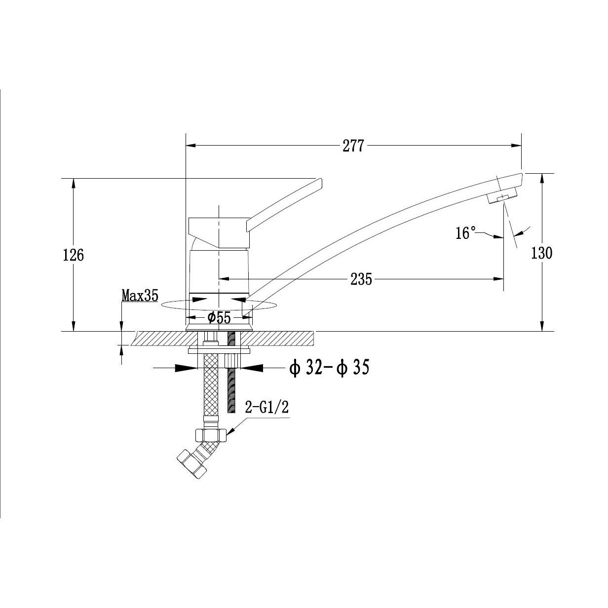 EW 1724004 Смеситель EW д/кухни низкий D-40мм(топаз)
